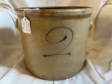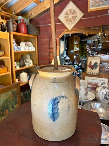Cobalt decorated stoneware churn